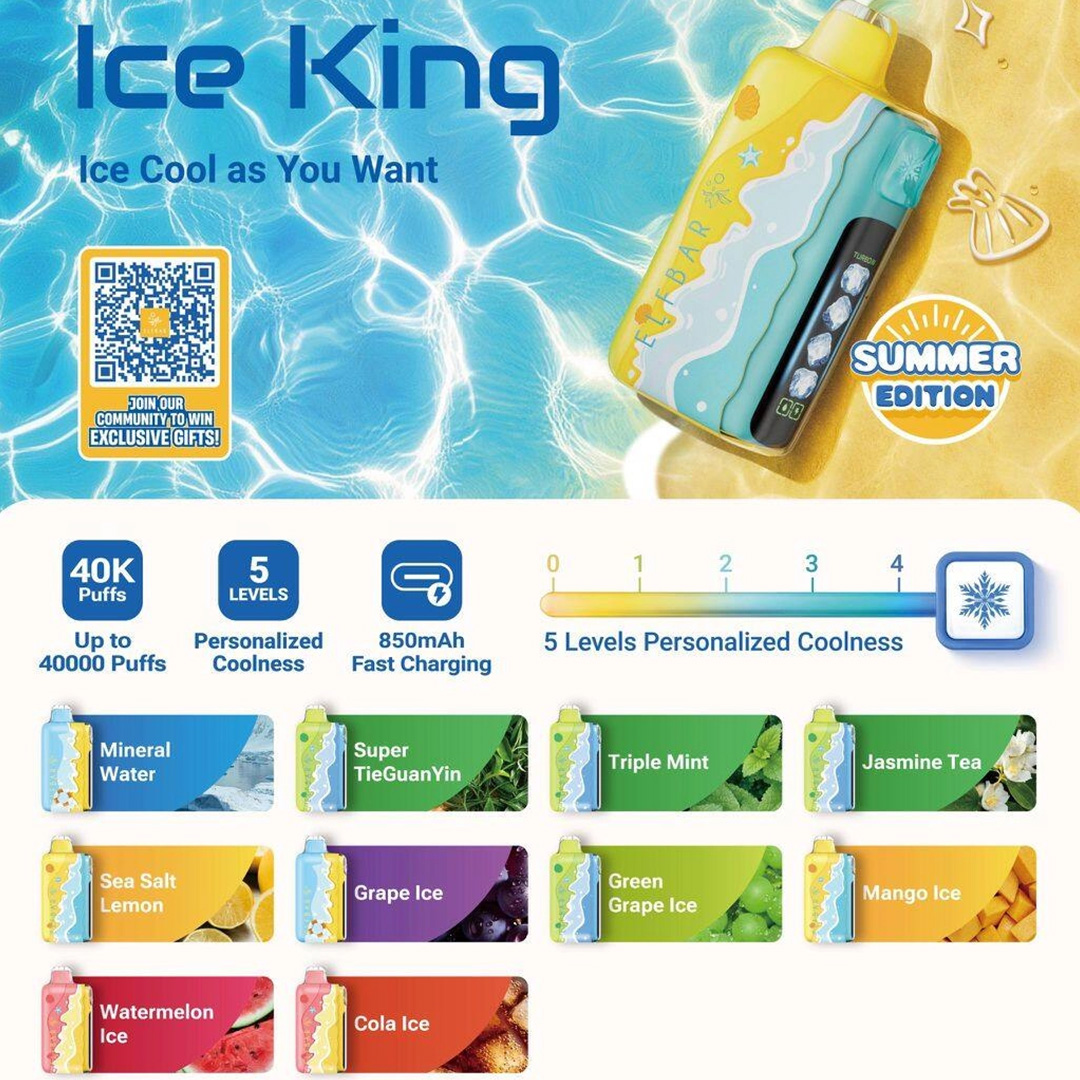 口味选择上覆盖面很广,包括 超级铁观音、海盐柠檬、可乐冰、矿泉水、芒果冰、茉莉花茶、葡萄冰、青提冰、三重、薄荷、西瓜冰,茶味、果味与强冰系都有,适合不同偏好人群。整体来看,冰神夏日版限定版 ELFBAR Ice King 40000 更像是一款“可调节型高端一次性”,在口感、冰感和使用体验上都做得比较到位。
