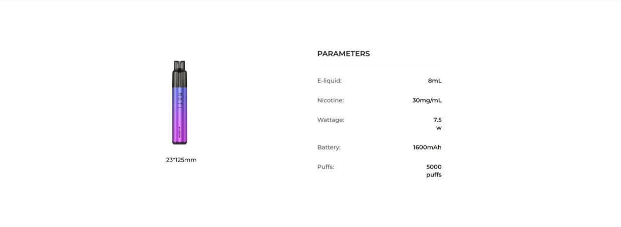 在核心配置上,MOTI R5000 预装 8ml 烟油,官方标称最高可达约 5000 口,整体使用周期更长,不需要频繁更换。尼古丁含量为 30mg/mL,击喉感清晰但不过分刺激,适合已经习惯一定尼古丁浓度的用户。内置 1600mAh 大容量电池,相比普通一次性产品更耐用,电量和烟油匹配度高,用到接近尾段也不容易出现明显乏力感。
