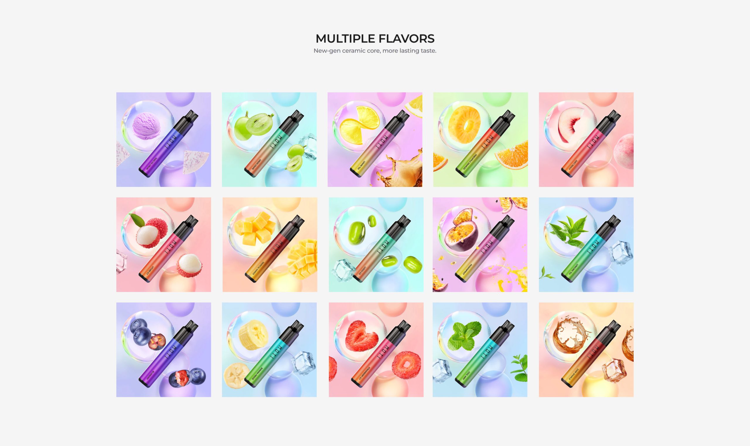 口味选择是魔笛 MOTI R5000 的一大亮点,覆盖清凉、果味和茶饮多种方向,包括老冰棍、蓝莓、薄荷、可乐、蜜桃、柠檬茶、龙井茶、绿豆冰、荔枝冰、百香果、菠萝橙子、草莓冰、青提、香芋冰激淋、芒果等,层次清晰,不同口味之间区分度明显,适合长期使用时轮换口味,减少疲劳感。